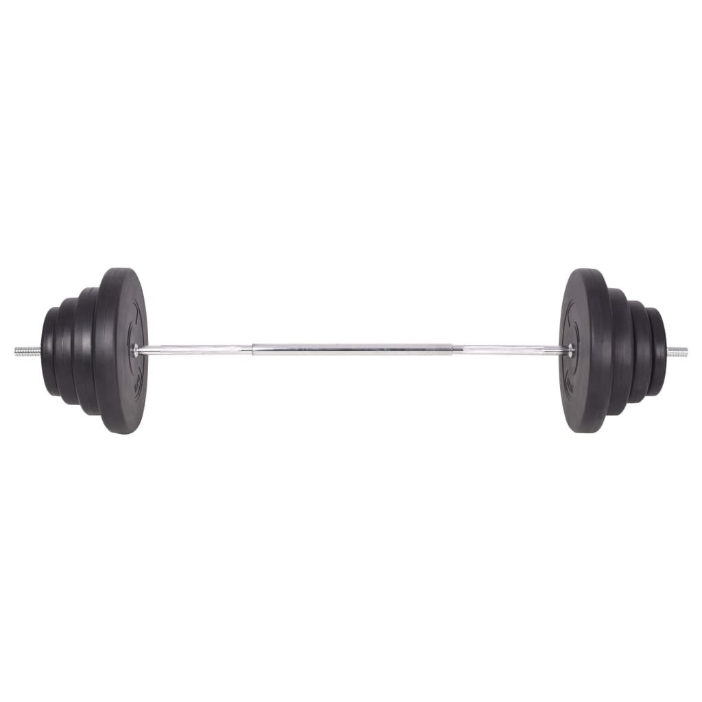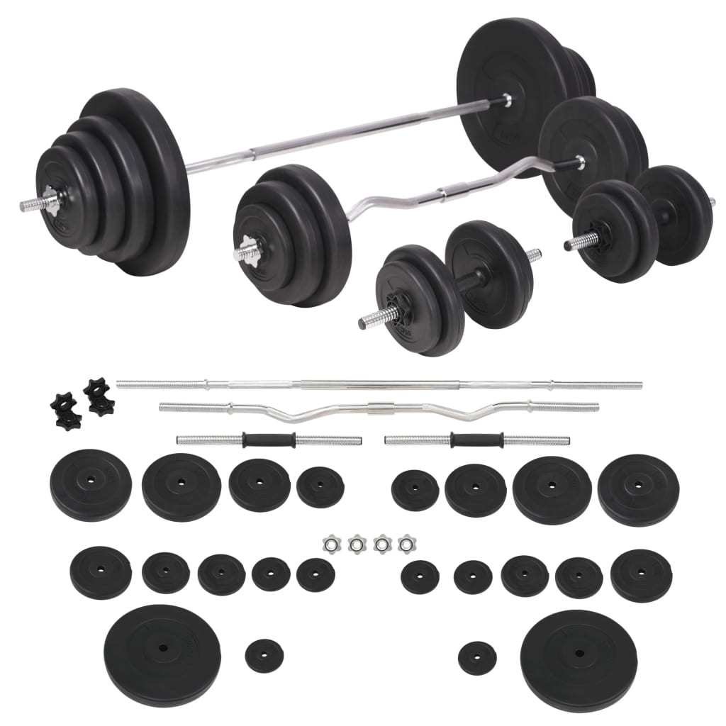 This versatile barbell and dumbbell set is perfect for chest, biceps, arms, triceps and back muscles. It includes two 33.1 lb plates, two 22 lb plates, two 16.5 lb plates, four 11 lb plates, six 5.5 lb plates, six 2.8 lb plates, two barbell bar and two dumbbell bar and has a total weight of about 264.6 lb.
