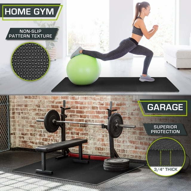 Transform any space into a comfortable workout area with the ProsourceFit Exercise Puzzle Mat ¾' or ProsourceFit Exercise Puzzle Mat 1". Six extra-thick tiles create protective flooring over wood, concrete or carpet for workouts and gym equipment. This is the perfect solution for anyone looking for an exercise mat or multipurpose flooring thicker than ½' thick. Both mats have great durability, but the 1" creates more protection for heavier gym equipment and higher traffic. The textured surface has a soft feel with non-skid traction that is low-maintenance. Interlocking pieces are easy to assemble, covering 24 square feet. 12 border pieces help to create a flawless finish. Built to absorb impact and provide cushion to sensitive joints while reducing noise. EVA foam contains no toxic phthalates. Use just a few tiles for smaller spaces, or purchase multiple sets for large areas. Perfect for fitness studios, home gyms, commercial use, children’s play areas, gymnastics or wrestling practice, yoga and more!