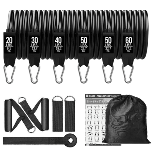 All Accessories in One Package: The package includes 11 items, 5 exercise bands, 2 handles, 2 ankle straps, a door anchor, and a carry bag.